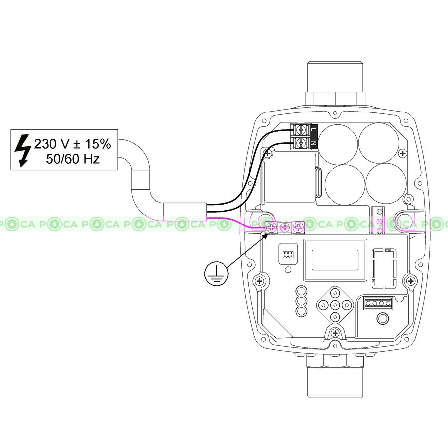 Универсальная модель для электрических насосов с однофазной мощностью двигателя 230 В и трехфазной мощностью двигателя 230 В.