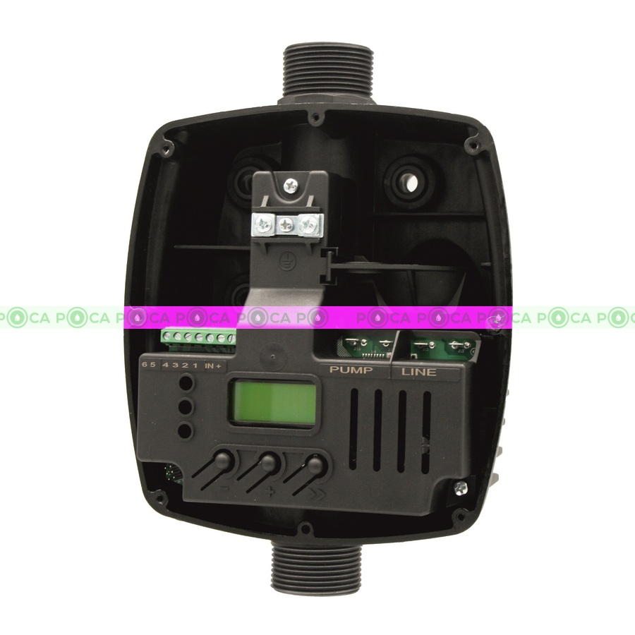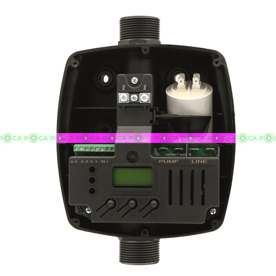 Цифровой нажимной переключатель расхода. Совершенно новый, он сочетает в себе простоту реле давления и надежность реле расхода под давлениемБольшой дисплей позволяет легко и точно программировать. Внутри отсек, предназначенный для конденсатора, делает его идеальным партнером для систем с погружными насосами.