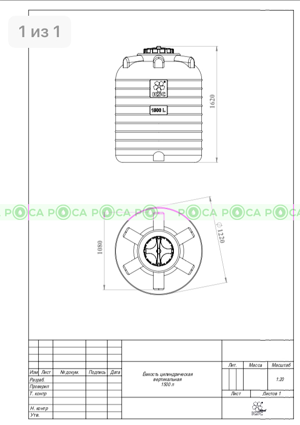 Емкость цилиндрическая вертикальная 1500 литров (синяя) KSC Емкость цилиндрическая вертикальная 1500 литров (синяя) KSC