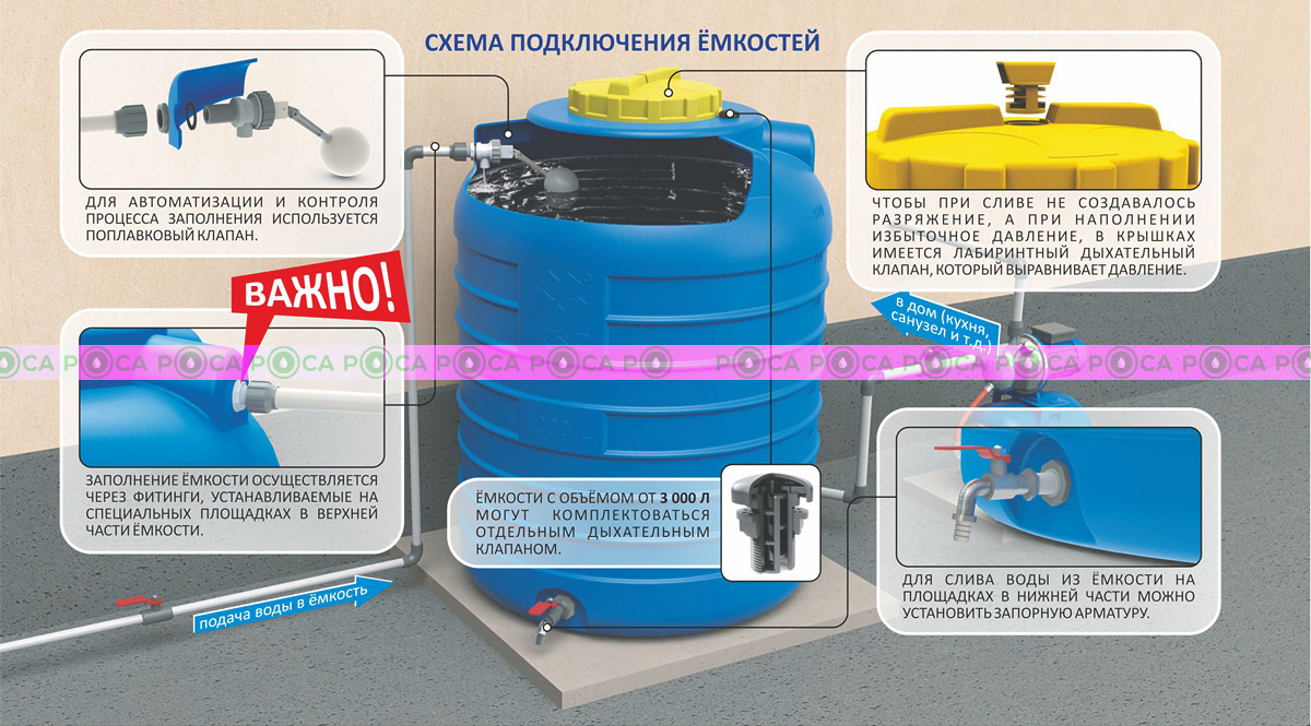 Бак д/воды ATV-2000 (черный) с поплавком Миасское