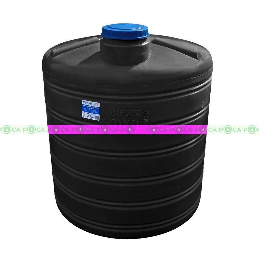 Емкость цилиндрическая вертикальная УСИЛЕННАЯ 3000 литров (черная) АКВАПЛАСТ