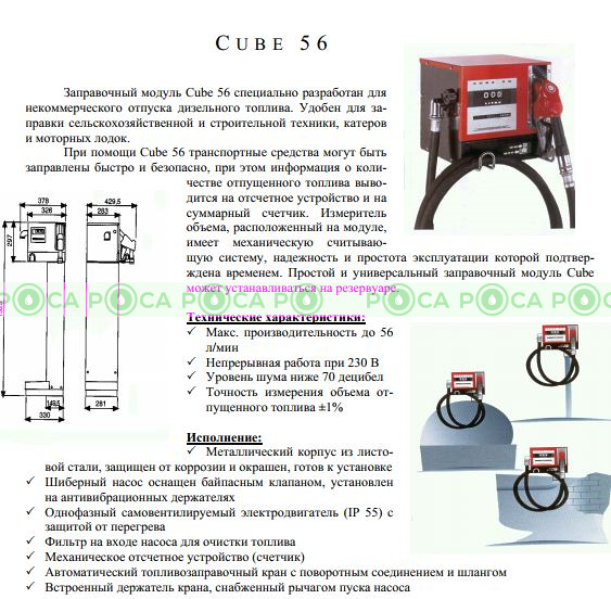 Емкость укомплектована заправочным модулем CUBE 56 (производство Италия).  Длина шланга на заправочном модуле стандартная – 4 метра. Армированный химостойкий  шланг от емкости на заправочный модуль  – 10 метров.