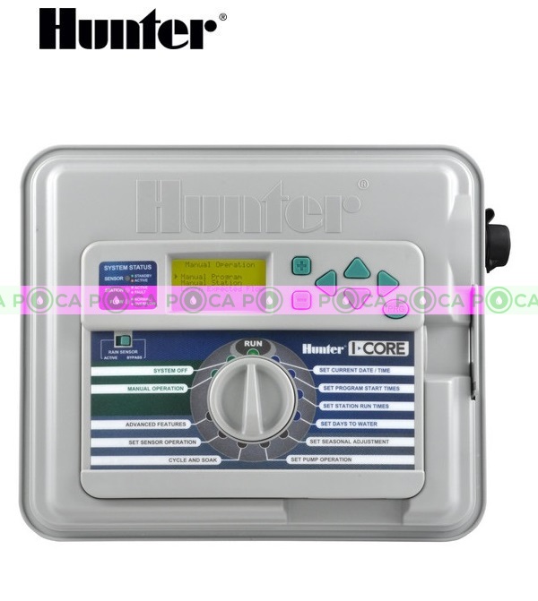 I-Core – это пульт управления Hunter для коммерческих объектов и высокопроизводительных частных приусадебных участков. Имеющий такие инновационные функции как мониторинг потока, быстрая проверка работы системы, установленный на фабрике SmartPort®, шесть языков и удобный графический дисплей, I-Core подойдет для большинства высокопроизводительных ирригационных проектов. Еще одна причина считать I-Core уникальным – его исключительная универсальность. Модель I-Core в пластиковом корпусе расширяема от 6 до 30 зон, а в металлическом - до 42. Добавление двухпроводного модуля DUAL® увеличит количество зон управления до 48. Также, доступны модели в корпусе из нержавеющей стали и на пьедестале. Опциональные функции управления ROAM и ROAM XL и встроенный датчик погоды Solar-Sync®, позволяющий более эффективно расходовать водные ресурсы, делают возможности I-Core практически безграничными.