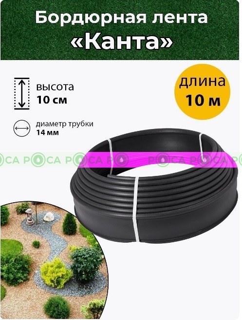 Бордюр садовый Канта представляет из себя декоративную ленту, которая используется для ограждения клумб, грядок, цветочных композиций и других элементов садового участка, огорода. Он изготавливается из прочного пластика, что позволяет ему долго сохранять свою форму и цвет даже при воздействии агрессивных климатических условий. Садовый бордюр является одним из неотъемлемых элементов садового декора, который создает завершенный вид всего участка. Бордюр можно использовать для создания границ между различными зонами сада, например, между цветником и дорожкой, что улучшит организацию пространства и придаст ему новый вид. Декоративный садовый бордюр Канта выполнен из качественного пластика . Длина ленты 10 метров, высота 10 сантиметров, диаметр верхней трубки 1,4 см. Толщина бордюрной ленты 2 мм Садовый бордюр может быть использован не только для декоративных целей, он также отлично подходит как ограждение для грядок и огородов. Главным преимуществом канты является гибкость. Для установки садового бордюра необходимо подготовить площадку, сделать ровную канавку нужной глубины и ширины, чтобы лента была установлена на глубину и не сдвигалась. Он устанавливается в землю очень просто, без необходимости использования специального инструмента. Главным преимуществом садовых бордюров является их долговечность и универсальность - они могут использоваться на любом виде грунта и сочетаться с любым дизайном сада. Таким образом, садовый бордюр - это удобный и практичный элемент садового декора, который позволяет защитить растения и украсить участок. В нашем магазине Вы найдете различные варианты бордюров, которые помогут создать красивый и ухоженный вид Вашему саду