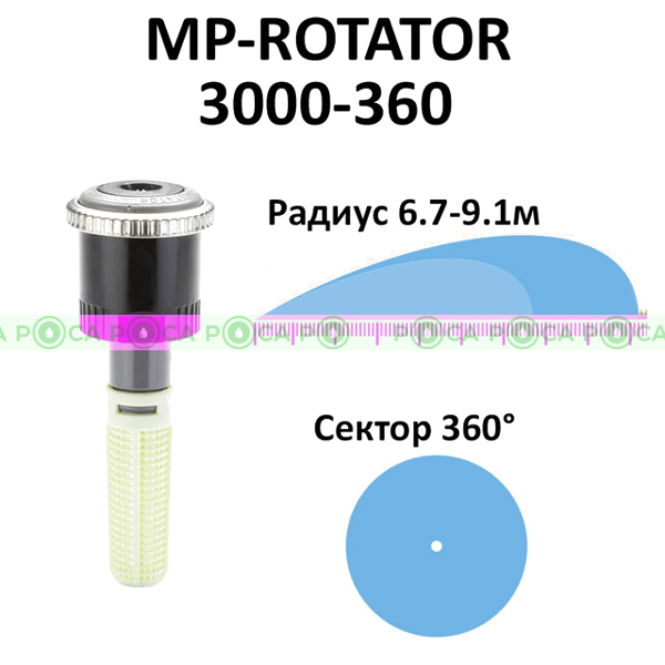 Сопло Hunter mp rotator это вращающаяся роторная форсунка. Использует меньше воды по сравнению с другими технологиями полива. За счет многоструйного распыления почва не получает большой объем воды мгновенно Распыление происходит равномерно по радиусу работы всей форсунки. MP 3000 360идеально подойдет для средних и больших площадей газона.
