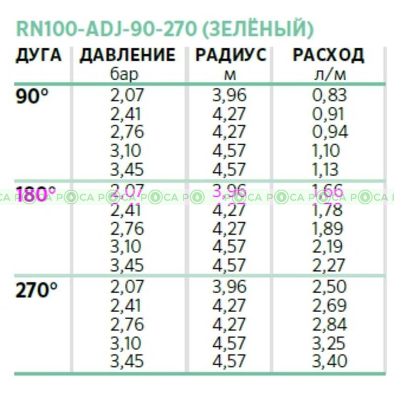 Сектор полива роторных форсунок RN100-ADJ K-RAIN составляет 90 ° - 270 °, что позволяет охватить 80% - 90% всех необходимых настроек сопла!