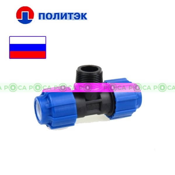 Тройник с наружной резьбой для пнд трубы 25х1/2х25 ТПК-АКВА. Компрессионные фитинги (Россия)